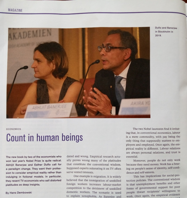 This morning, I happened on a book review of the book: “Good economics for hard times. Better answers for our biggest problems,” authored by Benerjee and Duflo. The review is published in D+C, titled “count in human beings”, hence the title of this post.