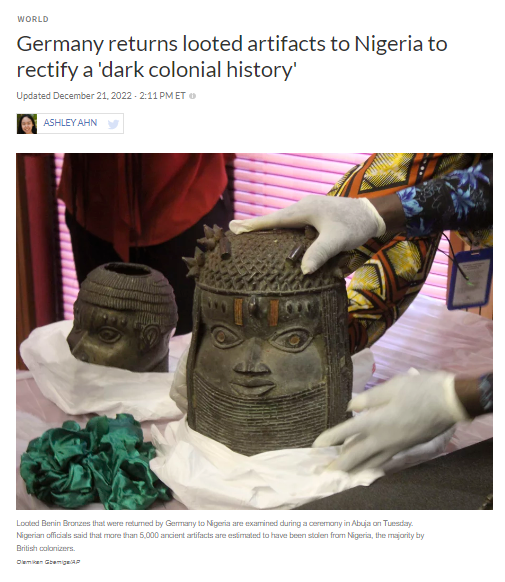 Among my favourite events last year, was learning of the existence of the Benin bronzes in museums and art collections in Europe. It confirmed that our black African ancestors were a civilized people. And it significantly debunked the rhetoric of the “uncivilized black African who needed or needs civilizing by the white European.”