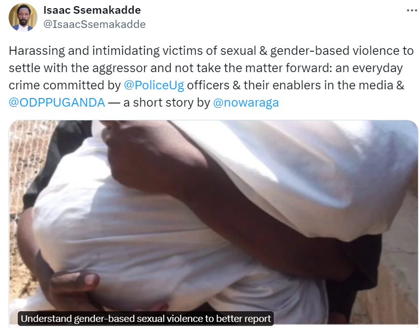 “Harassing and intimidating victims of sexual & gender-based violence to settle with the agressor and not take the matter forward: an every day crime committed by Uganda Police Force Officers and their enablers in the media and the Office of the Directorate of Public Prosecution.”